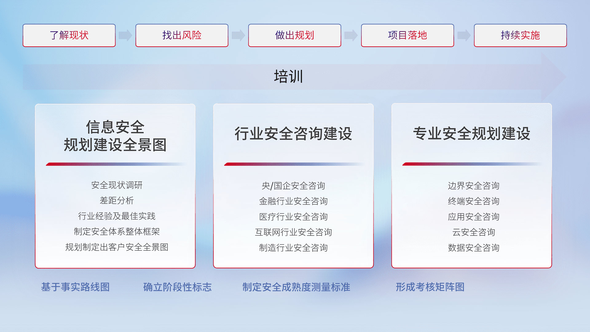 通过专业的法律咨询解读、、合规架构体现、、差异化解决方案、、、、测试实施支持等服务,,,为客户量身打造等保合规体系。。